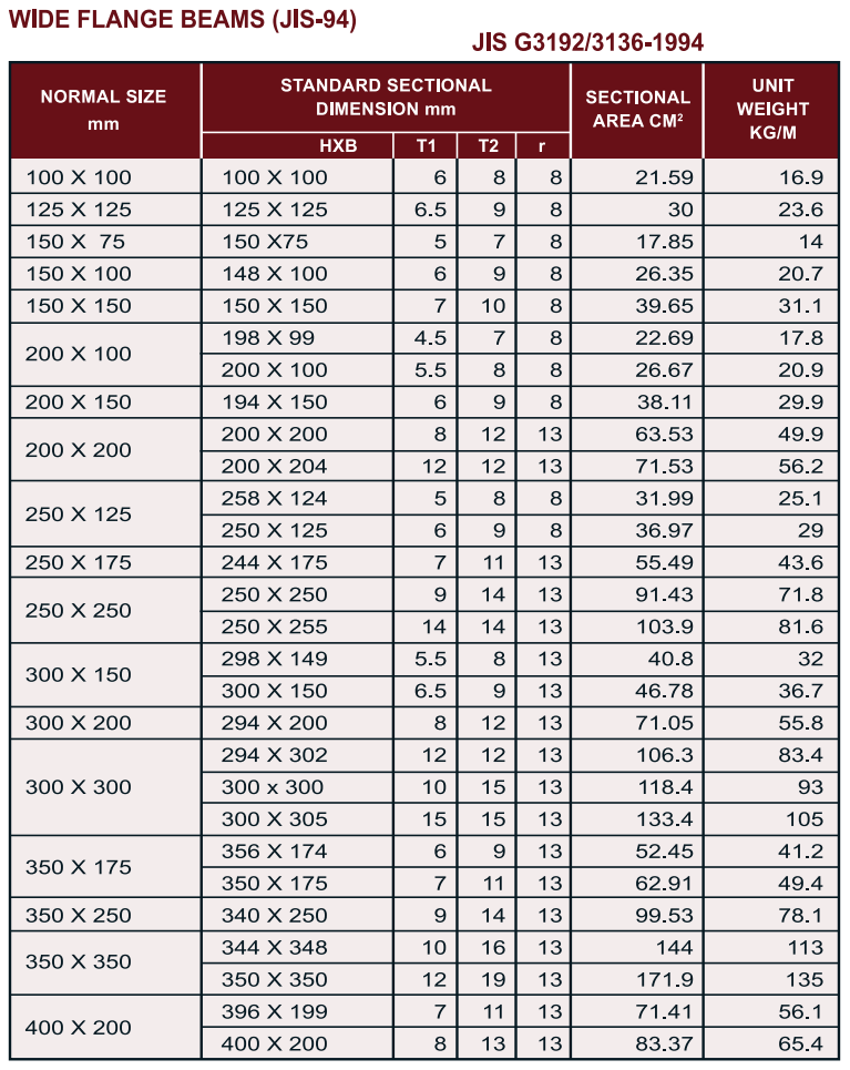 Wide Flange Beams (JIS-94)